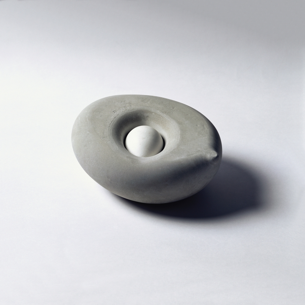 In Multiple „beherrschen, gebrauchen, benutzen“ treffen zwei Materialien aufeinander, die ungleicher nicht sein könnten. Obschon wir um die harte Eischale wissen, müssen wir bedacht sein, diese sorgfältig zu behandeln um sie nicht zu zerstören. Anderseits steht das Feste, der Stein, der vorgibt, Schutz zu sein. Der Titel „beherrschen, gebrauchen, benutzen“ will nicht Kommentar sein, vielmehr ist er Fragestellung und Zweifel zugleich. Wer ist es, der beherrscht oder der beherrscht wird? Wird benutzt oder gebraucht? Wer - wen und wozu?